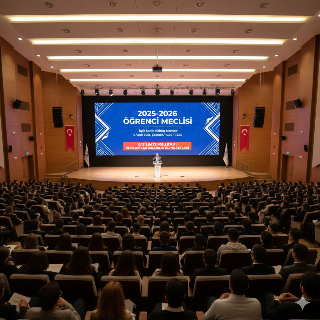 Üniversitemiz Rehberlik ve Uyum Ofisi tarafından 10 Aralık 2025 Çarşamba günü Aşık Şenlik Kültür Merkezinde 2025-2026 Eğitim-Öğretim Yılı Öğrenci Meclisi programı düzenlenecektir. Program, 10 Aralık 2025 Çarşamba günü saat 10.00-12.00 arasında gerçekleşecek olup, tüm akademik, idari personel ile öğrencilerimizin katılımı zorunludur.