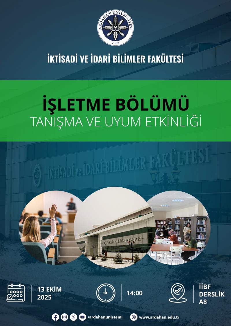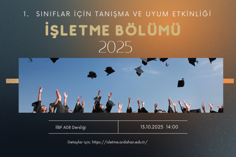 İşletme Bölümü'müzü kazanarak aramıza katıldığınız için sizleri tebrik ederiz. Akademik hayatınıza ilk adımı atarken sizlere yol göstermek, bölümümüzü tanıtmak ve aramızdaki uyumu güçlendirmek amacıyla bir Tanışma ve Uyum Etkinliği düzenlenecektir.